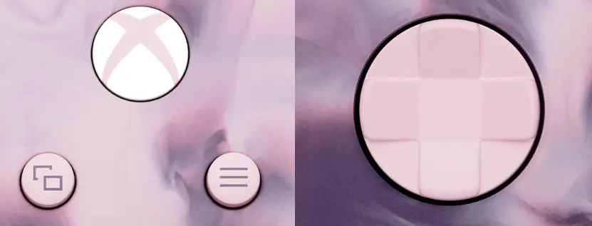该手柄采用粉色和紫色动感漩涡纹理,按键部分也是粉色和紫色涂装,其余配置与原版 Xbox Series X / S 手柄一致。