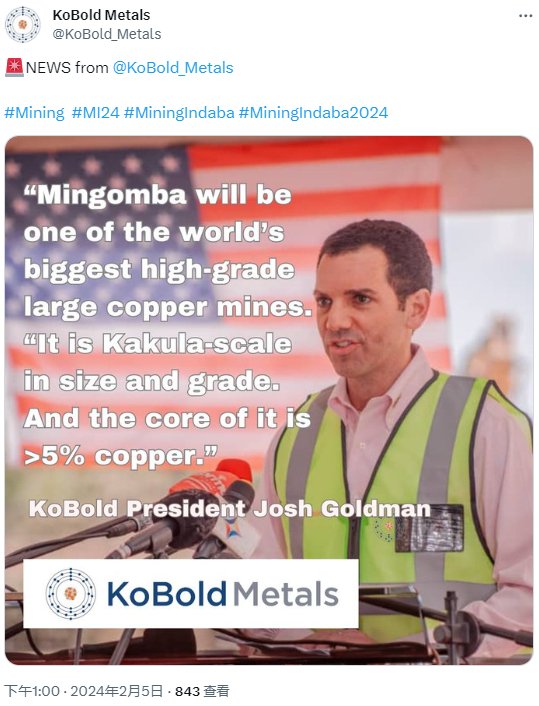根据周一的最新消息,利用AI勘探铜、锂等绿色转型所需金属的硅谷独角兽KoBold Metals宣布,公司在赞比亚Mingomba项目上发现了巨型铜矿储量。从这个项目中,也能看出AI的效率——KoBold Metals是在2022年12月中旬“拜登非洲行”期间,宣布出资近1.5亿美元买下Mingomba矿床的多数股权,随后花了仅仅一年多的时间就取得成果。