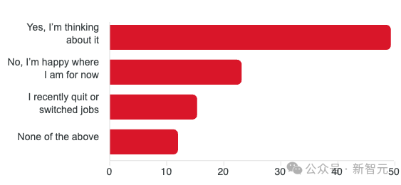 与去年相比,这一比例有所下降,当时有 52% 的开发者在考虑他们的职业未来。