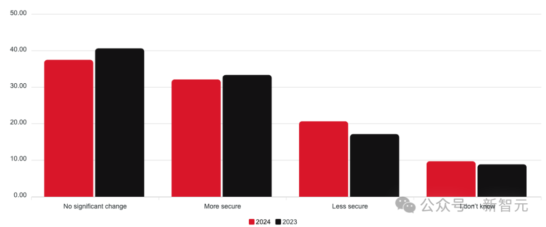 有 21% 的开发者表示,他们对工作的安全感较去年同期有所下降。而在 2023 年,这个数字为 17%。