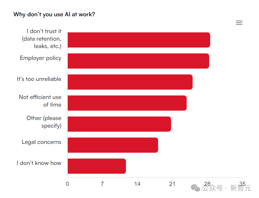 还有 33% 的人表示,自己在工作中不使用任何 AI。