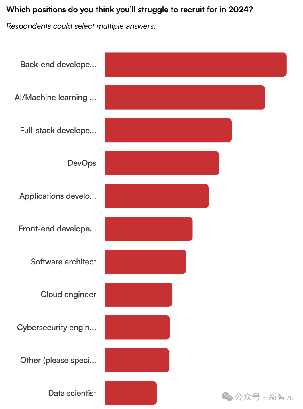 人工智能专家的岗位第一次进入了最难招聘岗位的前三名,直接把多年位居榜首的全栈工程师赶到了第三名。