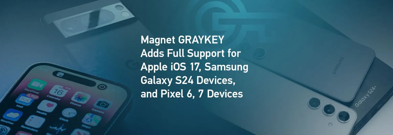 GrayKey 盒子此前仅限于破解 iOS 17 以下机型,而现在 Magnet Forensics 公司宣布成功破解 iOS 17 机型设备,此外该公司还表示可破解处于锁定状态下的三星 Galaxy S24 系列机型,以及 Pixel 6/7 系列手机。