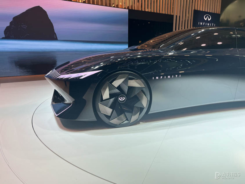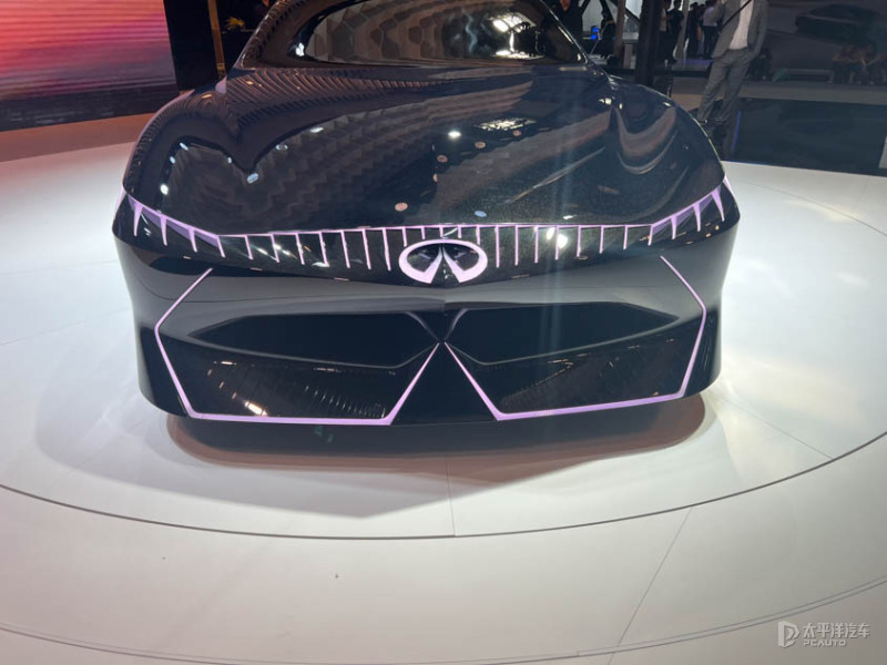 新车车定位于一款纯电动Fastback轿跑车型,从外观上看整车充满了棱角和折线,拥有很干练和精致的车型轮廓。夸张的前脸充满了视觉冲击力,也许这也会成为以后英菲尼迪品牌纯电车型的设计思路。封闭式的格栅给了设计师更大的设计空间,前格栅上方布满了显眼的LED灯带造型。上半部分使用了类似钢琴琴键的设计,下方则参考了英菲尼迪的品牌LOGO,彰显了自信。