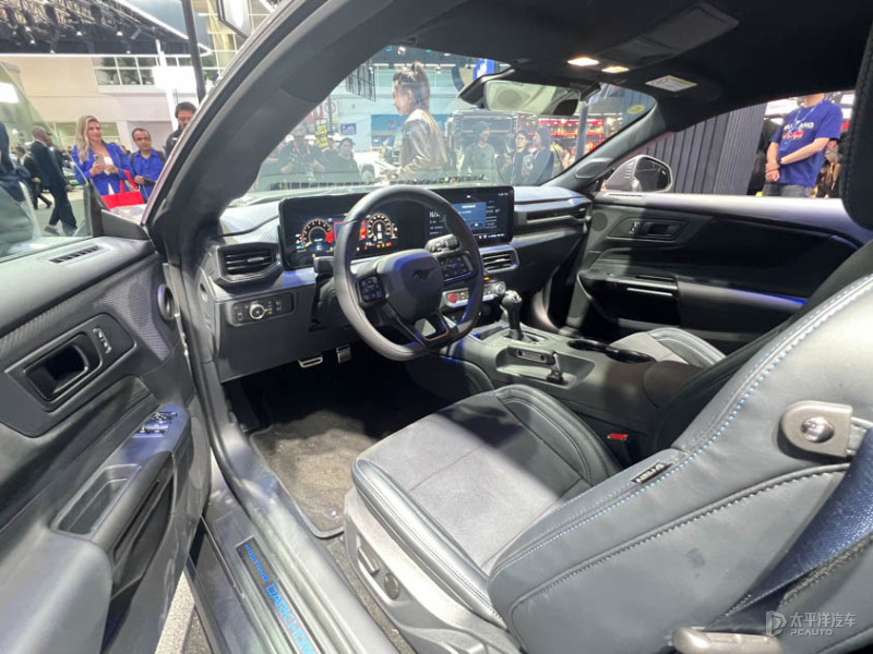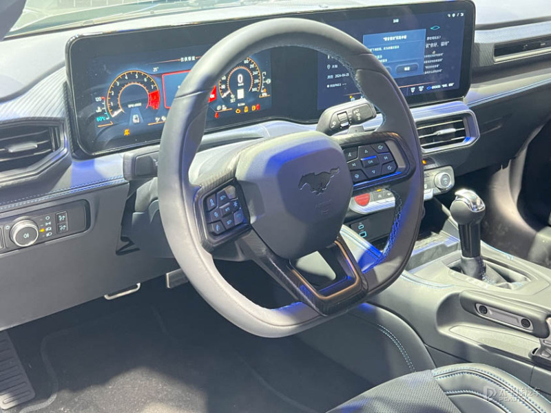 内饰方面,全新福特Mustang采用以驾驶者为中心的沉浸式智能驾驶座舱,设计灵感来自于战斗机座舱,12.4英寸数字仪表盘与13.2英寸触控联屏可根据驾驶者自己的习惯定制显示内容。此外,车内氛围灯可根据所选主题进行调整,而仪表盘显示界面则与驾驶模式一一对应。全新设计的以赛车为灵感的平底方向盘,也让车内更有性能氛围。