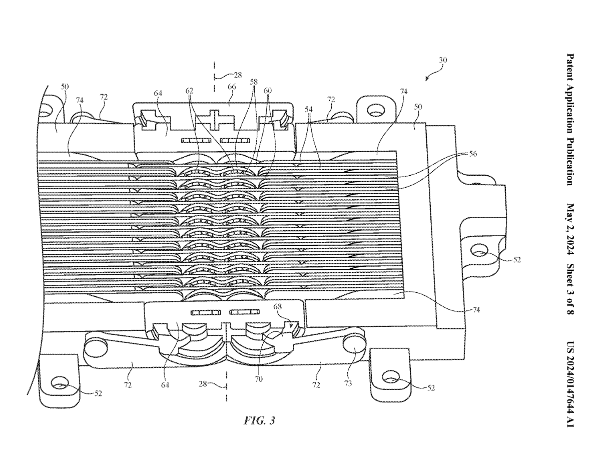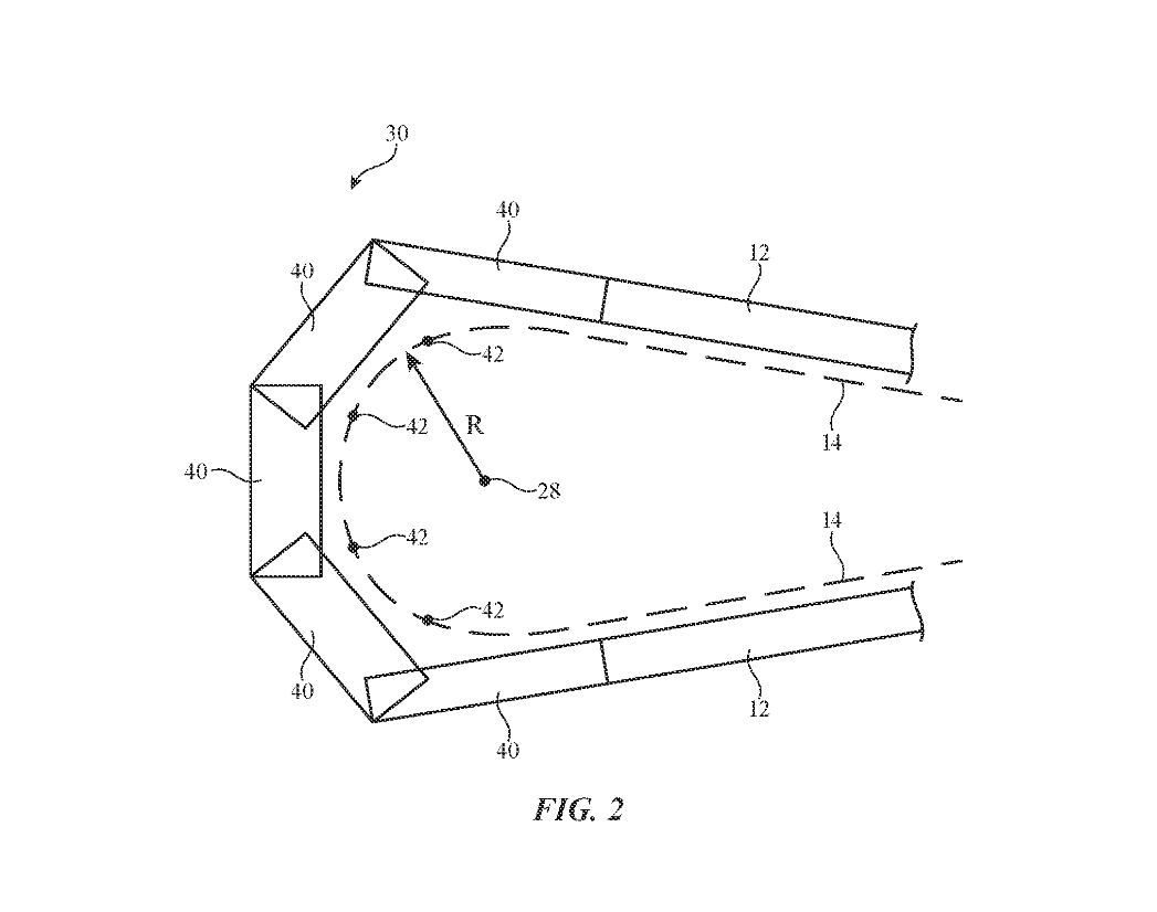 图 2 中使用多个 #40 铰链连接,然后彼此耦合以旋转运动,让外壳#12 的第一部分和第二部分之间串联延伸,不过专利图来看相邻铰链连杆的整体旋转量可能会受到限制。