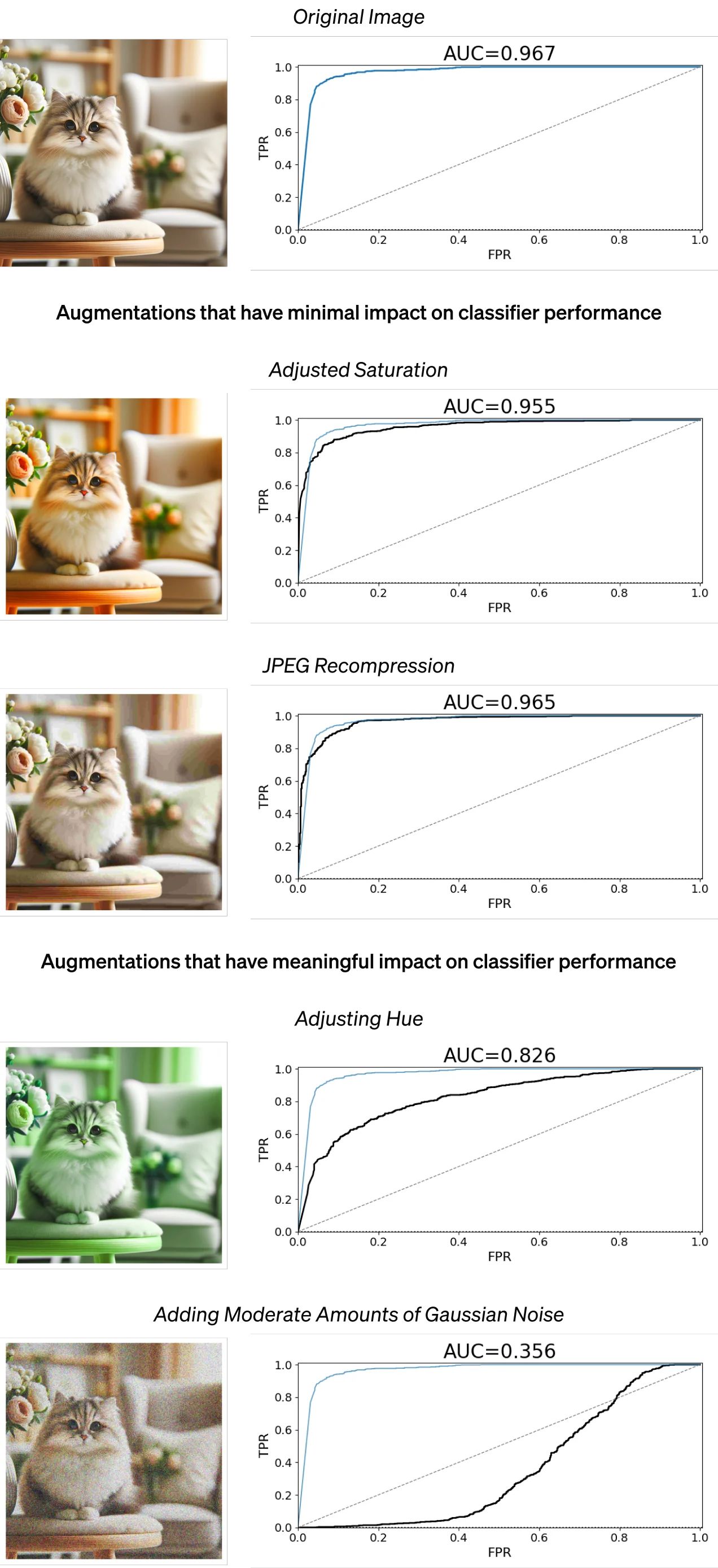 OpenAI 表示该工具的内部测试结果显示,在区分非 AI 生成图像与 DALL・E 3 生成的图像方面成功率很高,成功率能够接近 98%,同时只有少于 0.5% 的非 AI 图像被错误地标记来自 DALL・E 3。