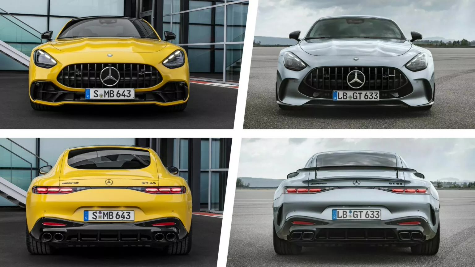为了让消费者能够轻松区分 GT 43 与 V8 版本的 GT 53 和 63,梅赛德斯为其设计了独具特色的外观。经过重新设计的前保险杠取消了格栅延伸部分,取而代之的是更大尺寸的进气口。前后翼子板也更加纤细,搭配尺寸更小的侧翼板。后保险杠采用更为简洁的设计,取消了垂直排气口,并换装了四出圆形排气管 (取代了梯形排气管)。