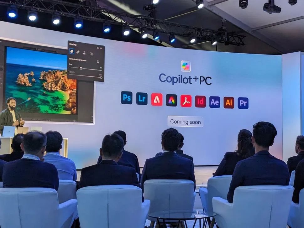 微软在本次活动中表示 Adobe 全套应用即将出现在“Copilot + PC”设备中,Photoshop、Lightroom、Firefly 和 Express 现在都已可用,Adobe 还表示 6 月开始推出 Illustrator 和 Premiere Pro。