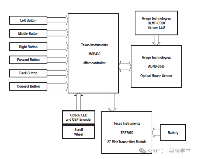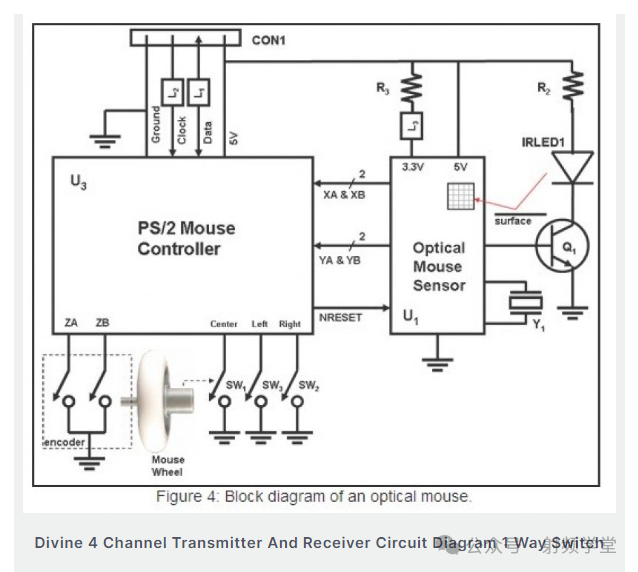 我们找到了一些关于无线鼠标电路设计模型,下图给出了无线鼠标的硬件设计和软件设计图,以供大家参考学习