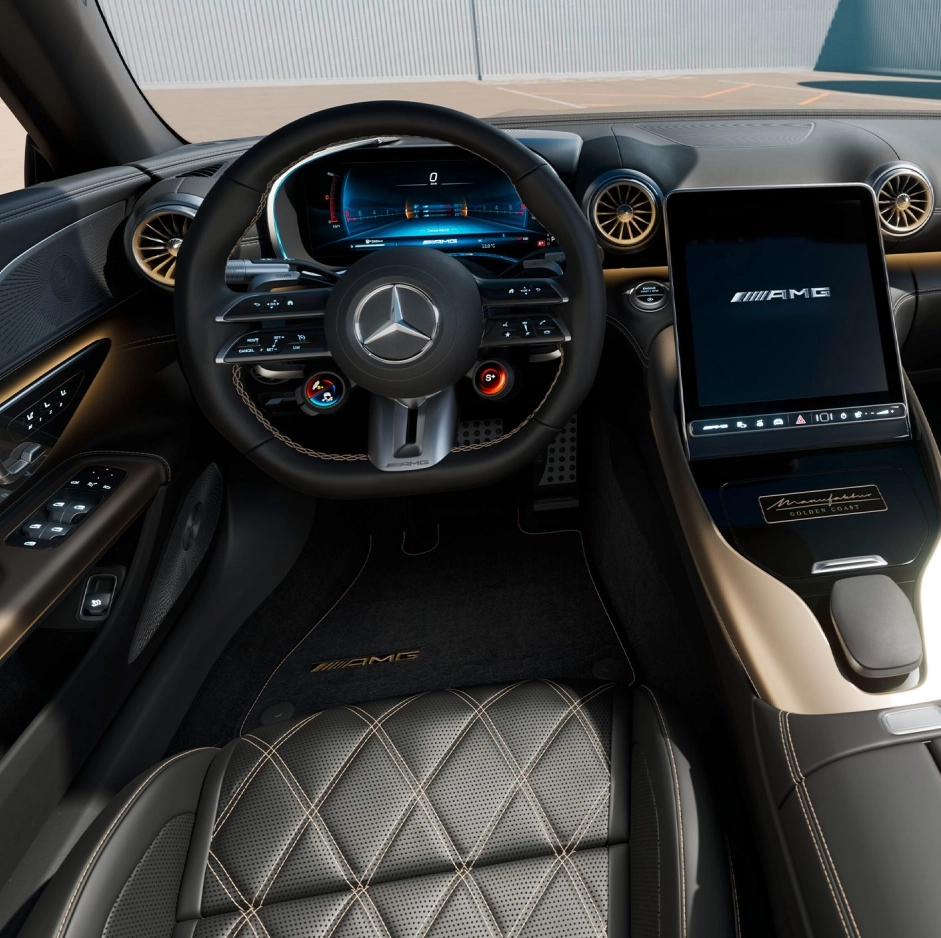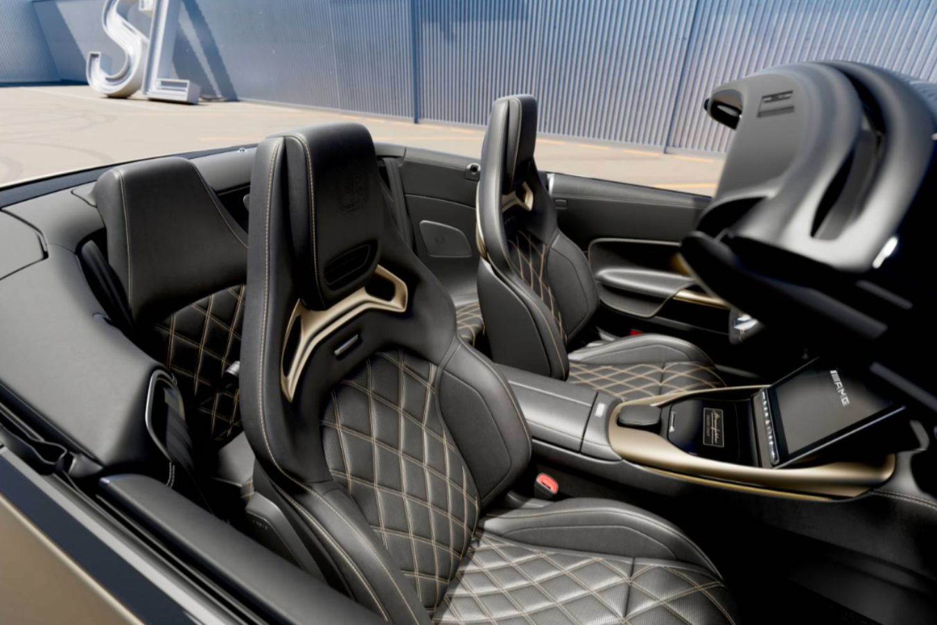 IT之家获悉,该车座舱采用黑色定制座椅,并配有复杂的菱形缝线,扶手、中控台和许多其他细节都是根据金色规格定制,镀铬饰面的 MANUFAKTUR 字样等标志性元素凸显了汽车的非凡个性。新车配备有 12.3 英寸液晶仪表和 11.9 英寸中控大屏,标配第二代 MBUX 人机交互系统。同时还提供 AMG TRACK PACE 虚拟竞赛工程师车载应用。