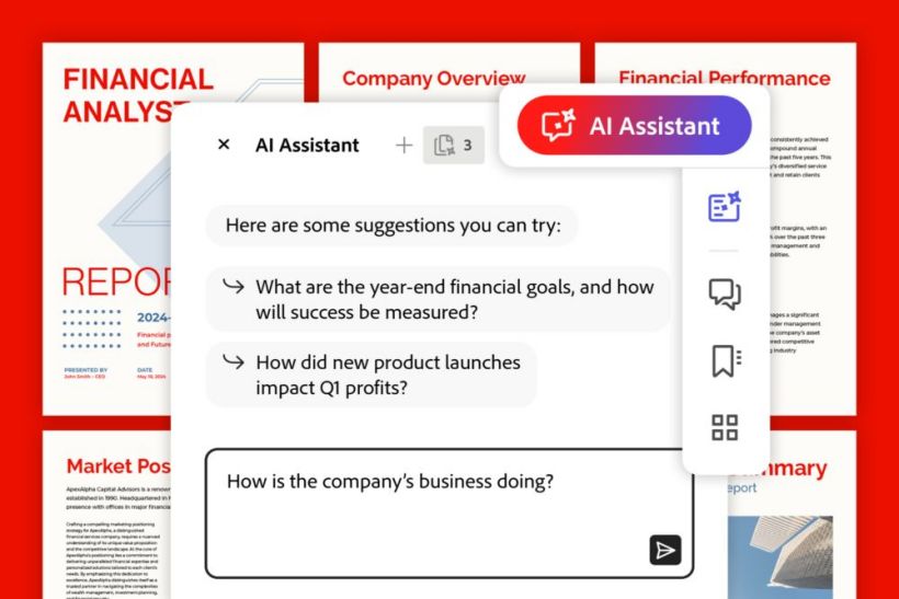 IT之家从报道中还获悉,Adobe 在增强 Acrobat 应用程序的文生图功能之外,还进一步整合 AI 功能,包括为用户从诸多文档和来源中找到特定的主题和趋势,用户可以将所有内容拖入 Acrobat AI 助手,该助手就可以格式化这些信息,实现添加引文、标注信息来源等。
