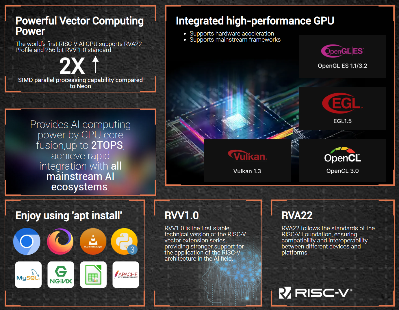 此外,该主板支持 Ubuntu 操作系统、Casa OS 运行,可轻松搭载 RISC-V NAS、运行 docker 容器。