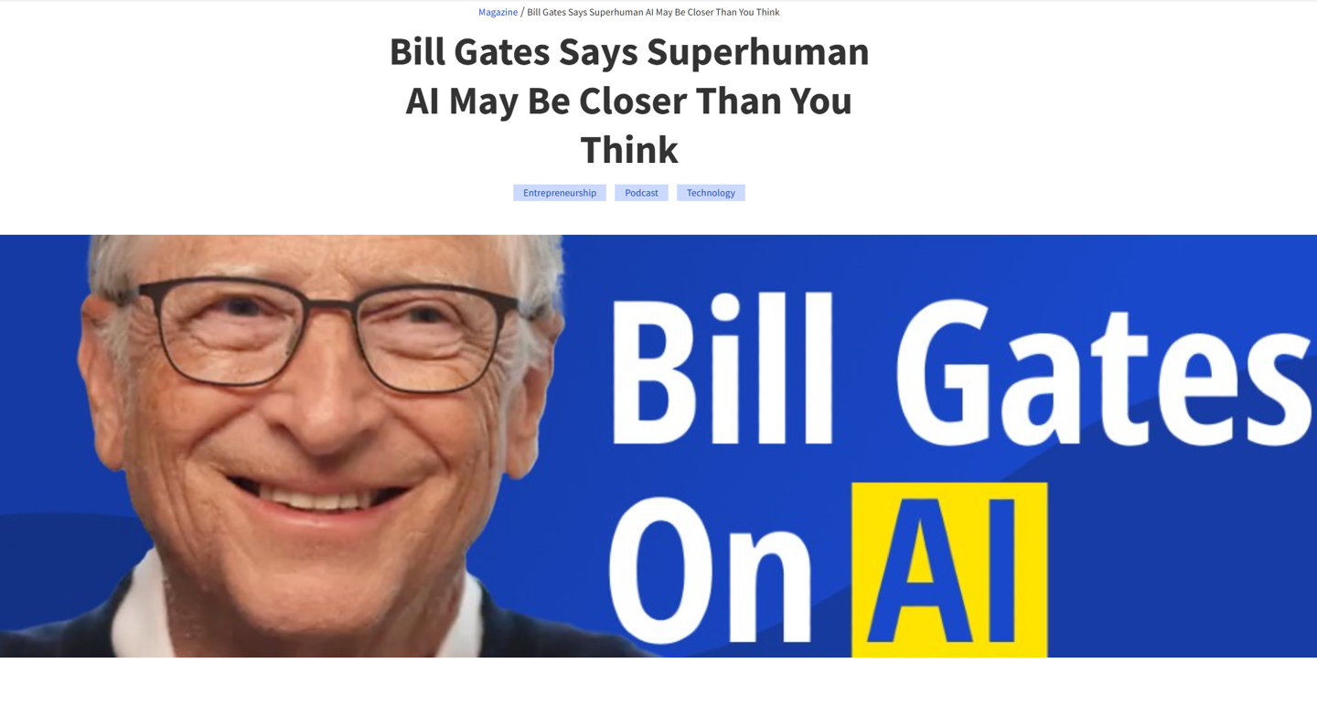 7 月 3 日消息,播客节目 Next Big Idea Club 上周末发布了对微软创始人比尔・盖茨的采访,盖茨谈到了人工智能、超级智能等话题。