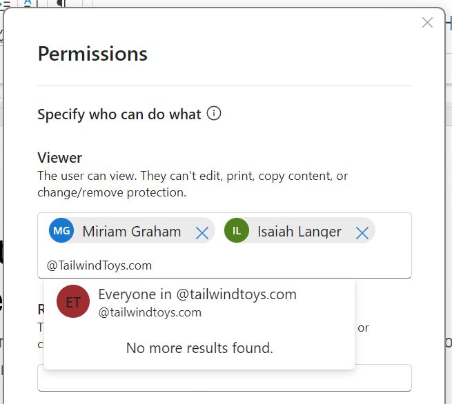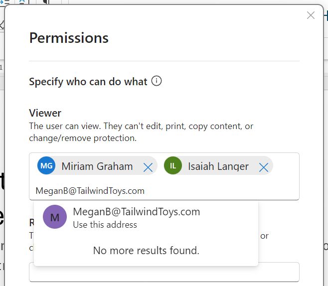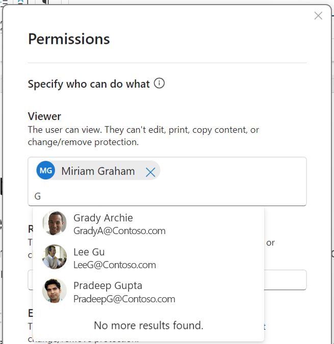 用户从组织或外部域中搜索选定的人员或组,并为其分配权限。该功能可在实时验证姓名和权限方面提供更快、更可靠的性能。