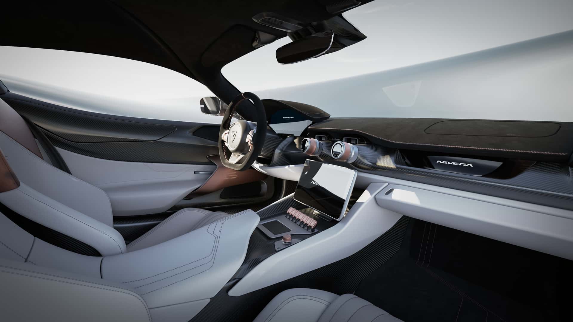 Nevera 极致的敏捷性得益于其全碳纤维车身和底盘结构。不同于大多数电动车将电池组放置于整个车底,Nevera 的电池组集中于车身中央和乘客舱后方的脊柱状结构中,从而使整车重量更加接近车辆中心位置,带来更佳的操控表现。