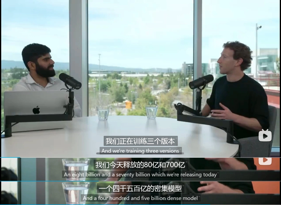 Meta 公司今年 4 月发布 Llama 3 AI 模型时,扎克伯格就在采访中透露正在训练 4050 亿像素的密集模型,但当时没有透露太多的信息。