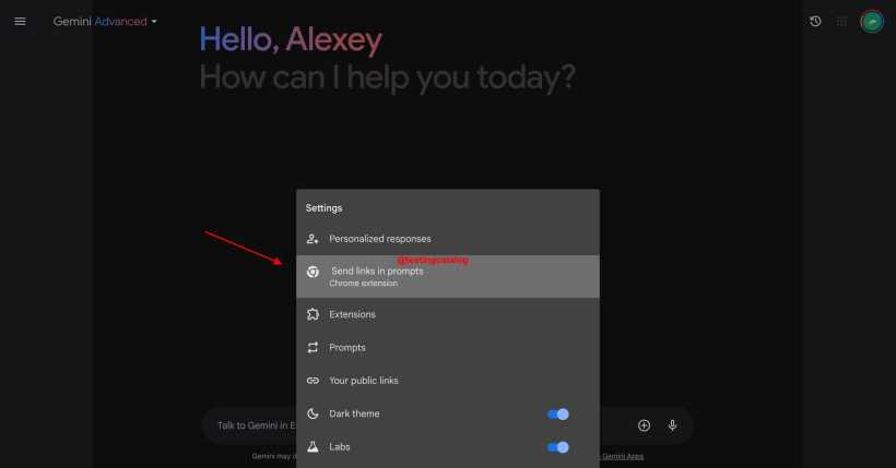 集成 Chrome 浏览器扩展:界面显示了一个“在提示词中发送链接”的选项,需要借助相应的 Chrome 浏览器扩展程序。