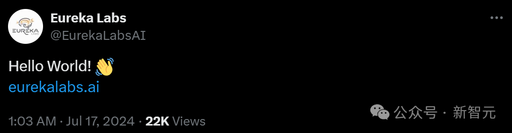 Eureka Labs 官推初次现身,写下了「你好世界」。