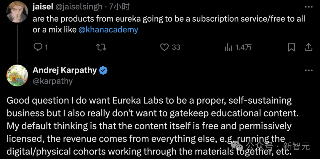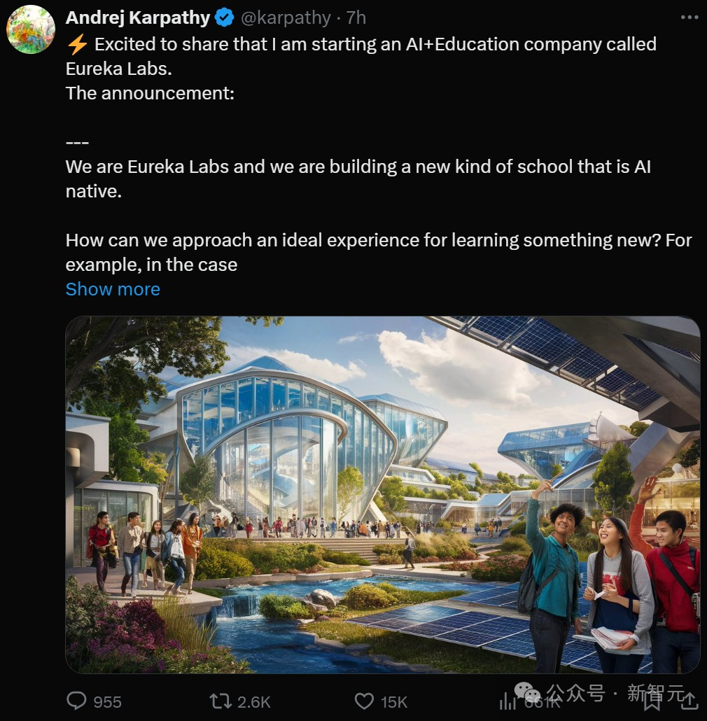 他激动地宣布,自己正在创办一家 AI + 教育的公司 —— Eureka Labs。