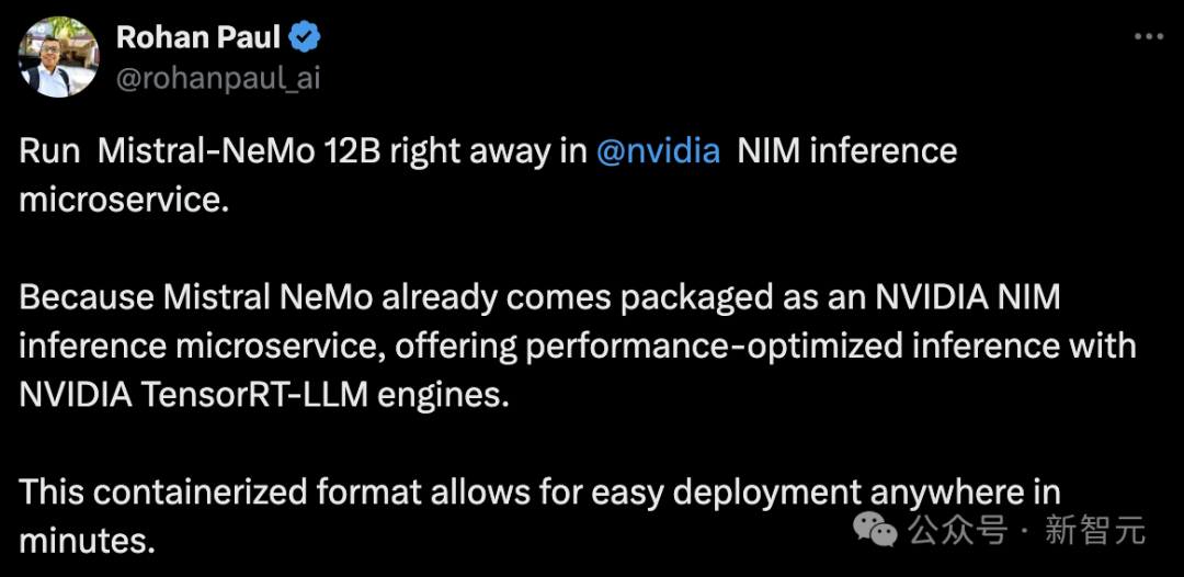 有网友已经迫不及待在英伟达 NIM 推理微服务中运行了 Mistral NeMo 12B。