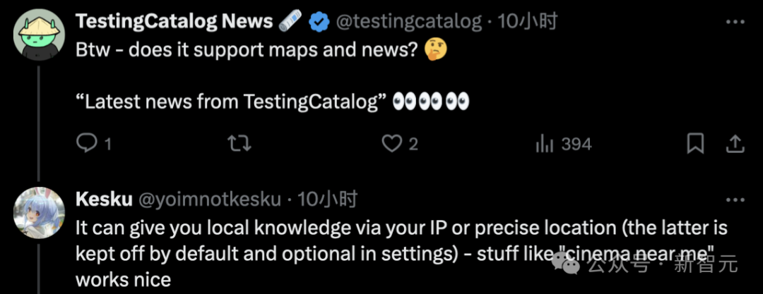 第一位网友问道,「它支持地区和新闻吗,比如来自 TestingCatlog 的最新新闻」。