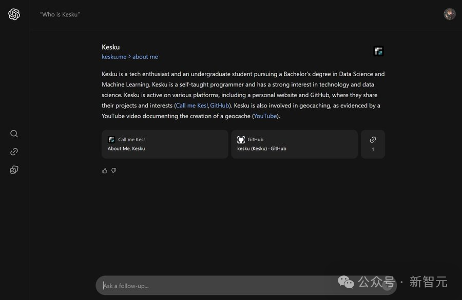 Kesku 搜索后的结果如下所示:显然,根据提问者问题,SearchGPT 给出了回答。