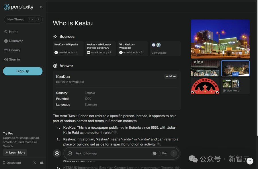 在下面提示中,她直接问道「谁是 Kesku」这么小众的问题。没想到,SearchGPT 给出了正确的解答,Perplexity 却回答错误了。