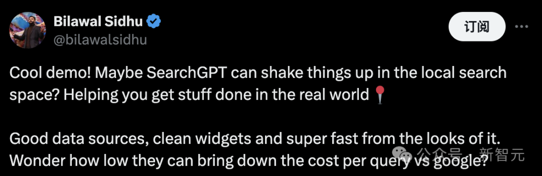 有网友对此评价道,「很酷的演示!也许 SearchGPT 能在本地搜索领域带来一些变革?它能帮助你在现实世界中完成事情。从外观来看,它有很好的数据源、简洁的小部件,而且速度超快。不知道与谷歌相比,他们能把每次查询的成本降低到多少」?