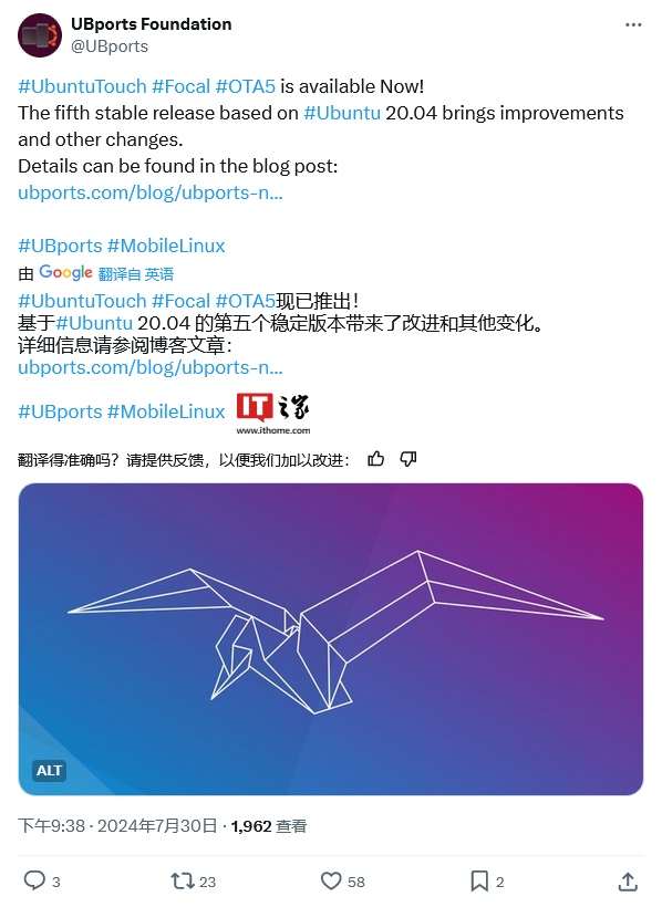 8 月 2 日消息,UBports 基金会于 7 月 30 日发布 Ubuntu Touch 20.04 OTA-5 版本更新,距离上次 OTA-4 更新发布相隔 6 个月时间。