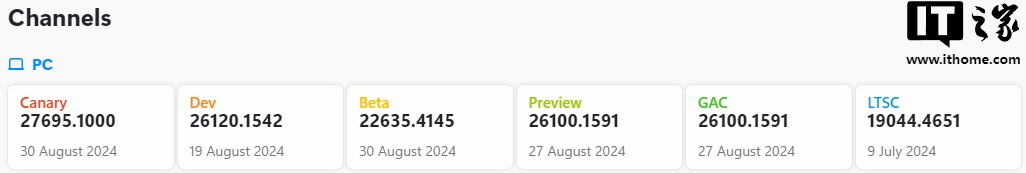 实际上,目前只有 Beta 频道还停留在 Build 22635 版本,其余频道大多已更新至 261xx 版本,其中 Build 22635.4005 已于 8 月初灰度推送给 Beta 用户。