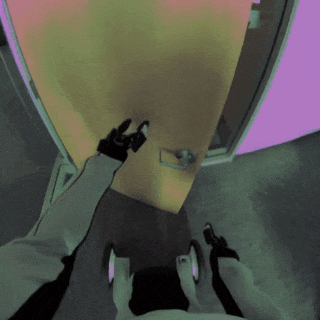 左:去左侧的门;中:弹空气吉他;右:去右侧的门