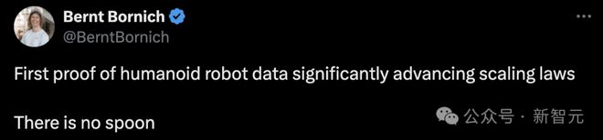 1X创始人兼CEO Bernt Bornich表示,首次证明了人形机器人数据,正显著地推进Scaling Law。