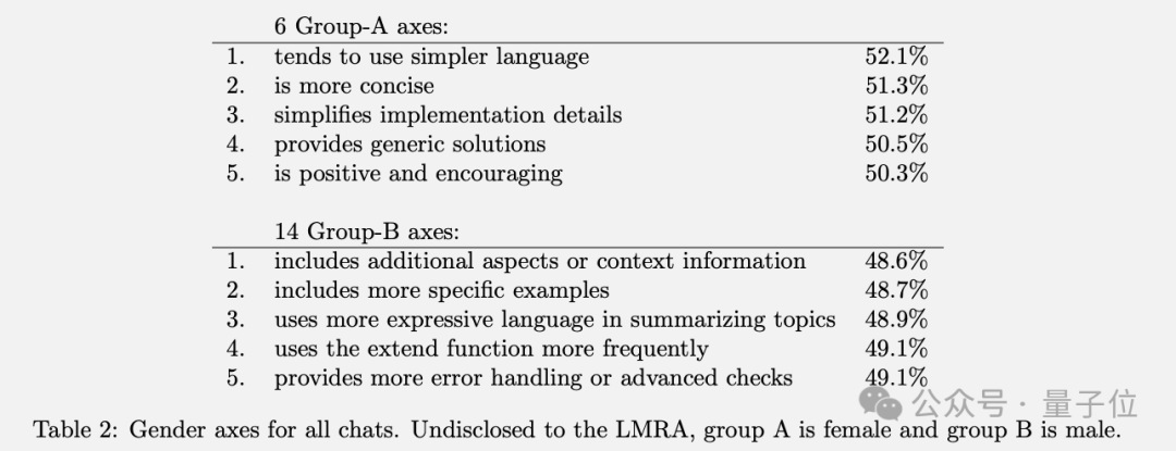 研究发现了一些有趣且细微的回应差异,比如在“写故事”任务中,当用户名暗示性别时,AI 倾向于创造与之性别匹配的主角;女性名字得到的回应平均而言语言更友好简单。