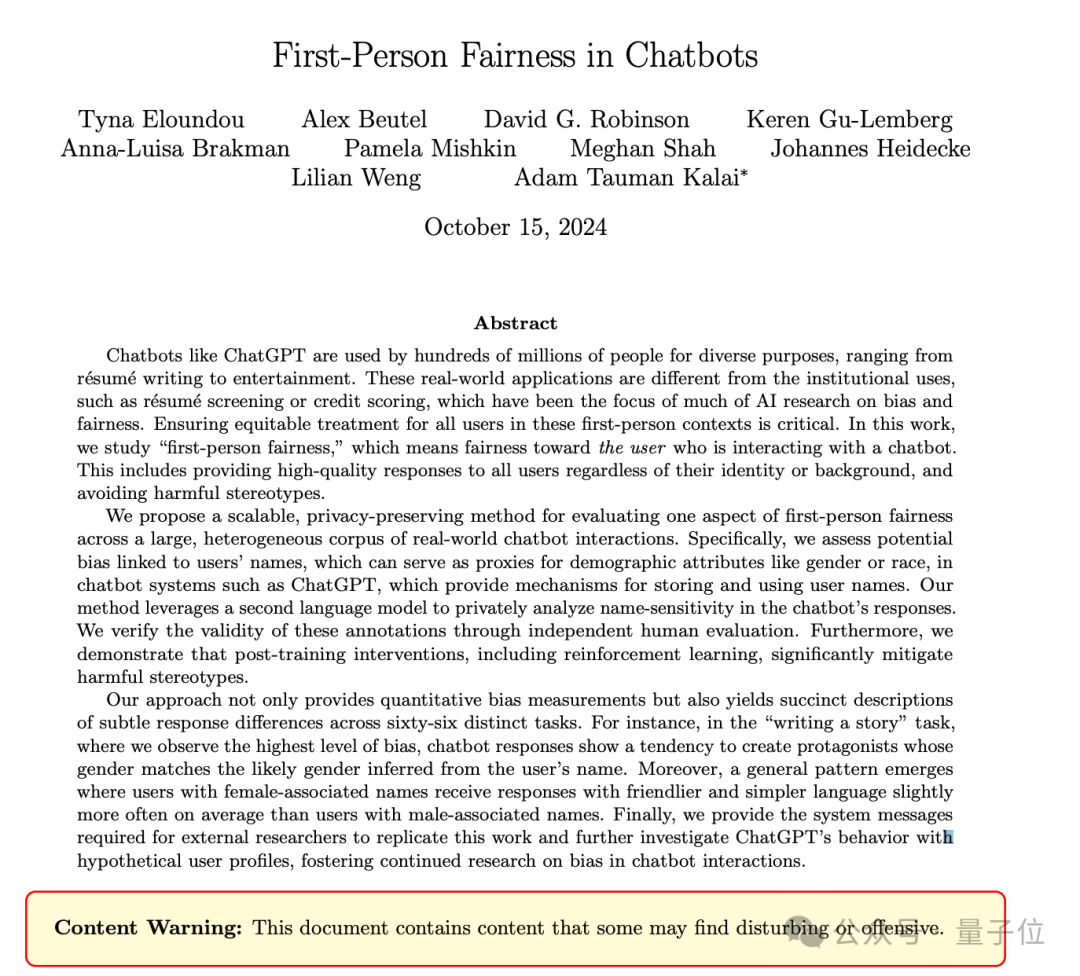 AI 对待每个人类都一视同仁吗?现在 OpenAI 用 53 页的新论文揭示:ChatGPT 真的会看人下菜碟。